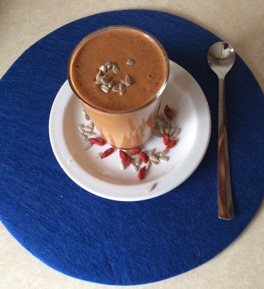 Blend until smooth, and if you’re reading this in Summer, pour over ice – if not, add a pinch of turmeric and roooaaarrrr!!