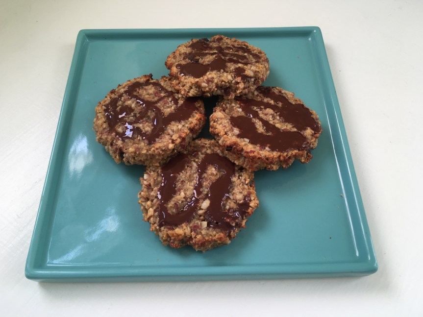 I reckon you could add dried fruit – raisins or chopped dried apricots – even coconut for other versions, but I’m going for beetroot next time, what do you think?
