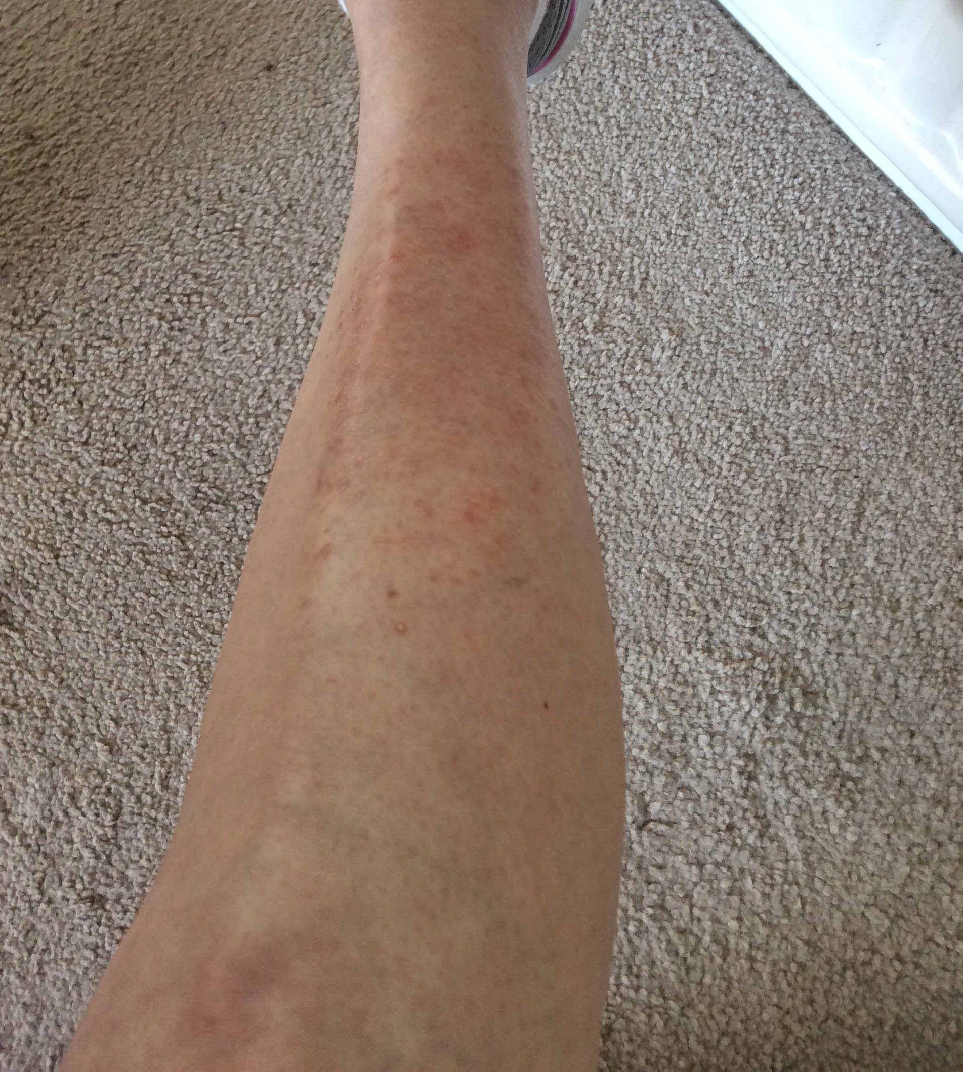 It took less than a month for my arms to clear up altogether, and a bit longer for the small patches on my left leg. However, I began to despair over the much larger area on my right leg.